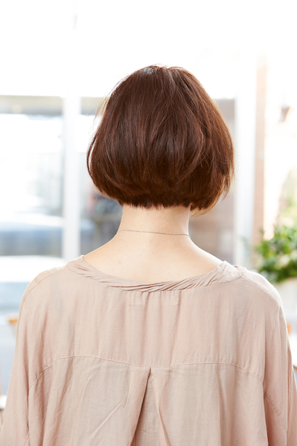 シンプルな前下がりボブは、毛先を収めすぎずストレートタッチな束感で遊びをプラス。