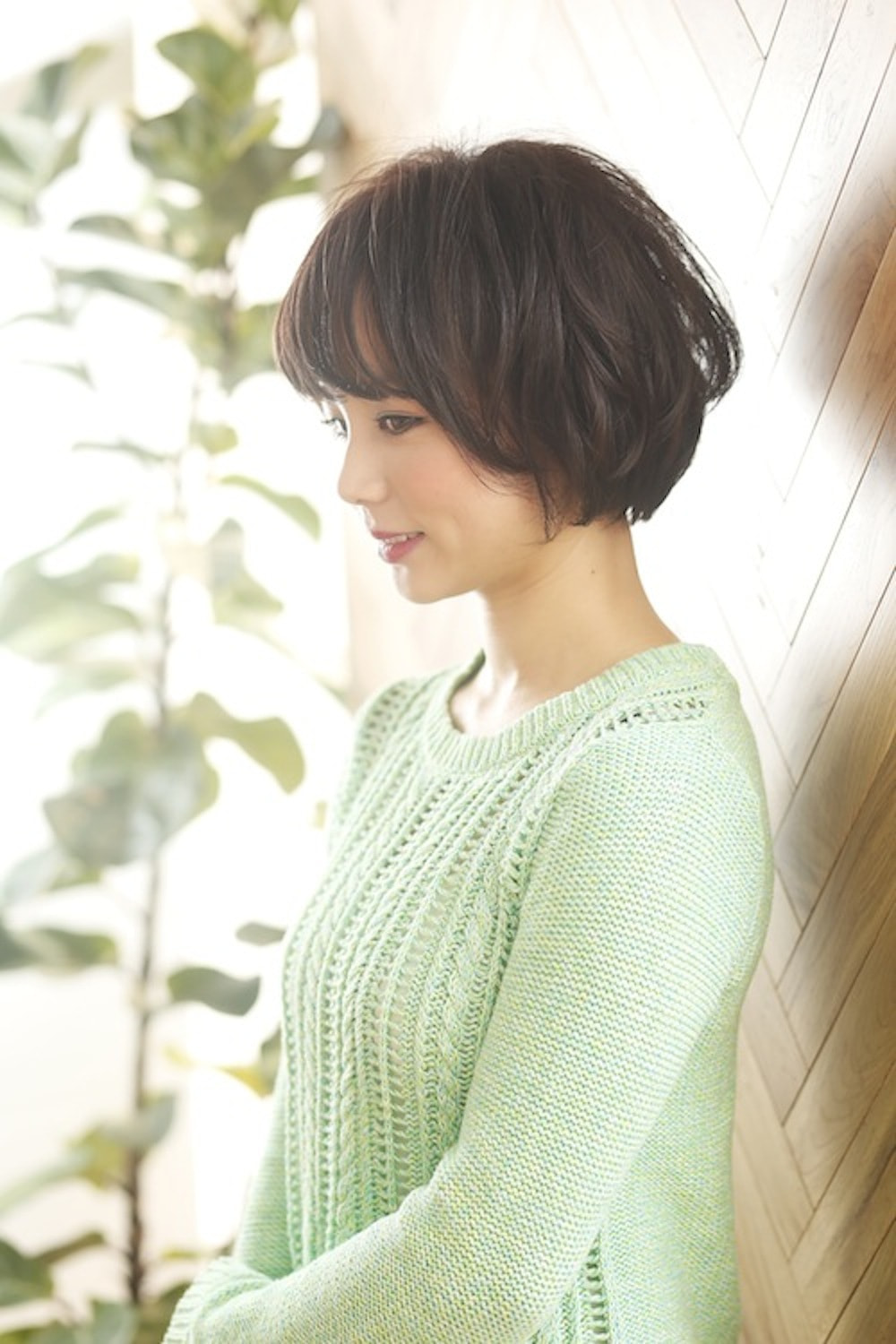 次にくる季節を感じられるようにダークトーンな髪でも重く見せずさりげないフワッとした質感を話題のタンニーカールで作った春満開の柔らかいショートスタイルです。